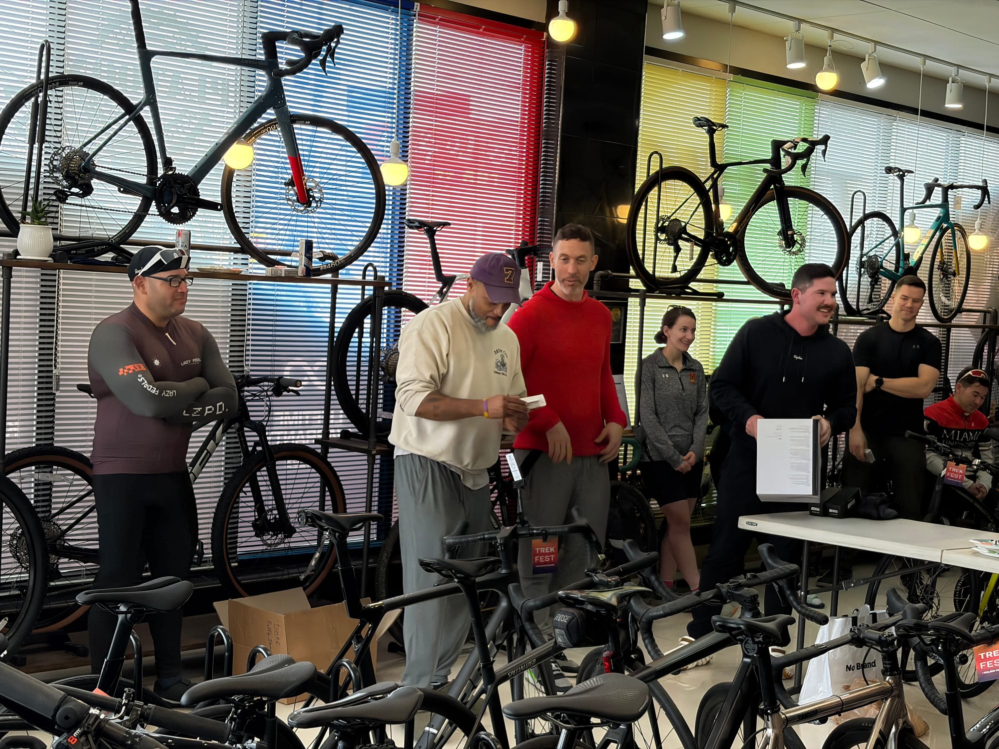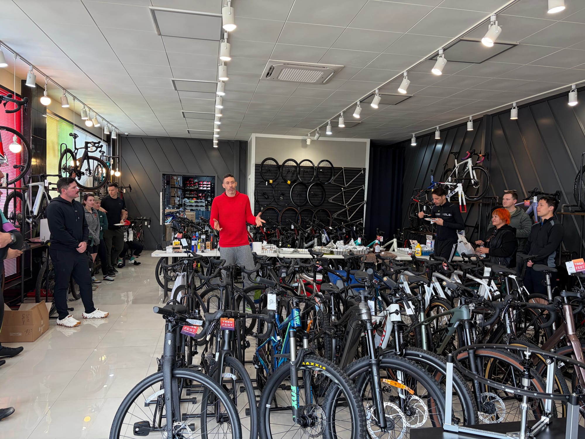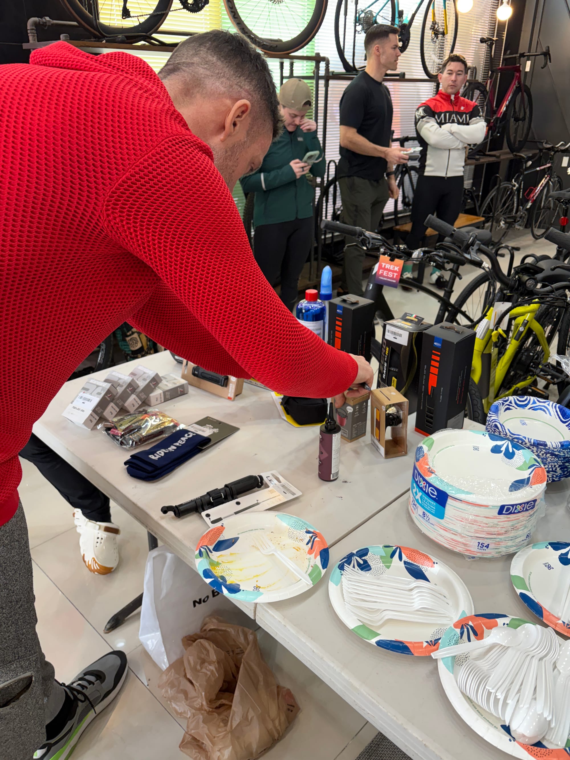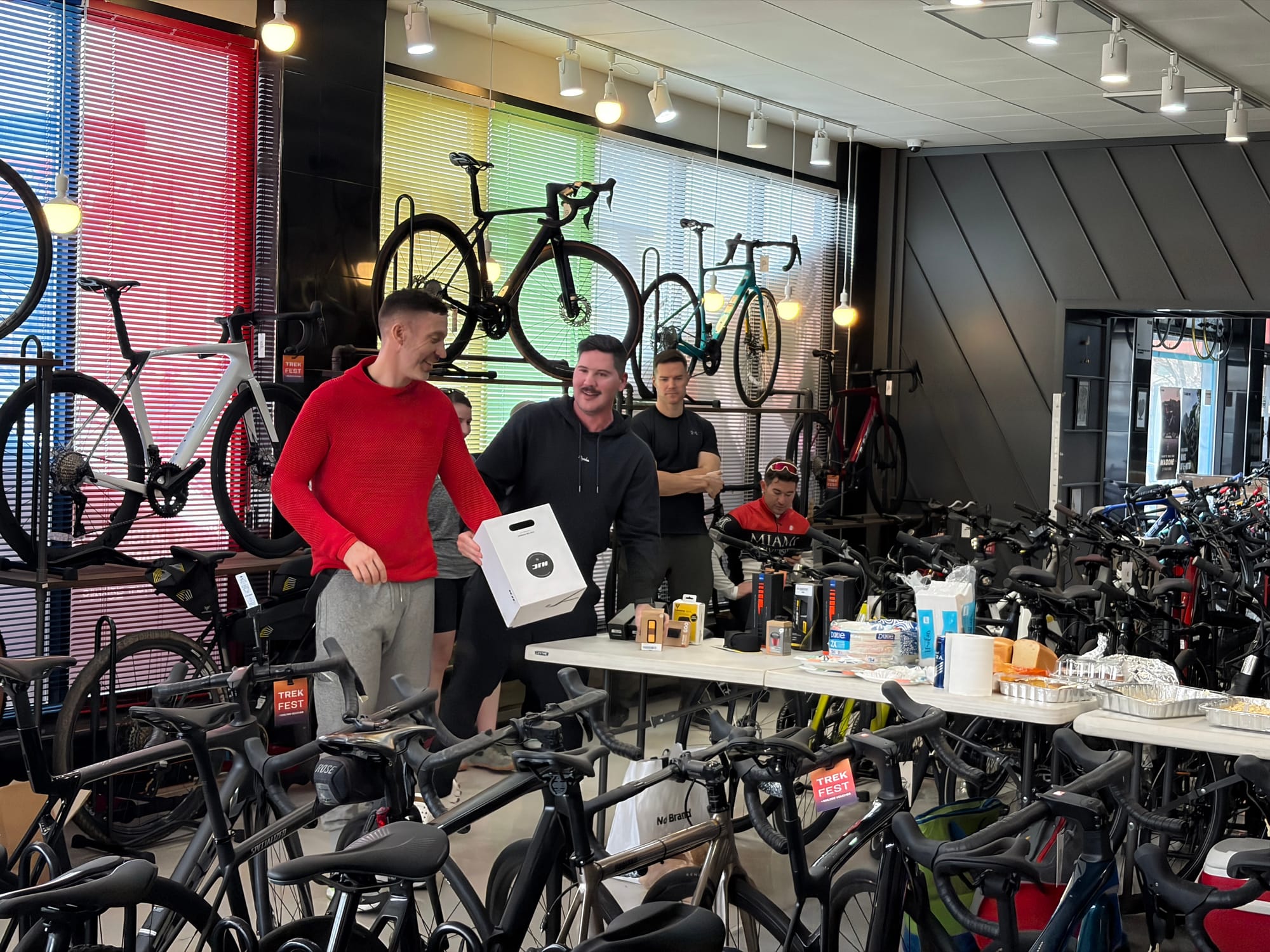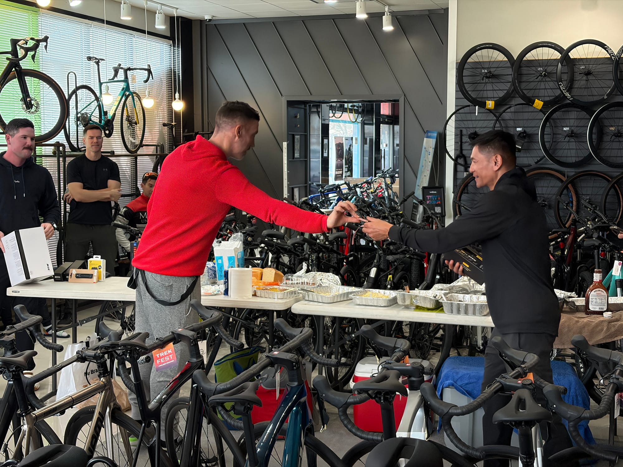 The ride was only half the fun. After rolling back in, everyone gathered at Platoon Cycles for a potluck — riders brought food to share, and we hung out, swapped stories, and just enjoyed the post-ride energy together.