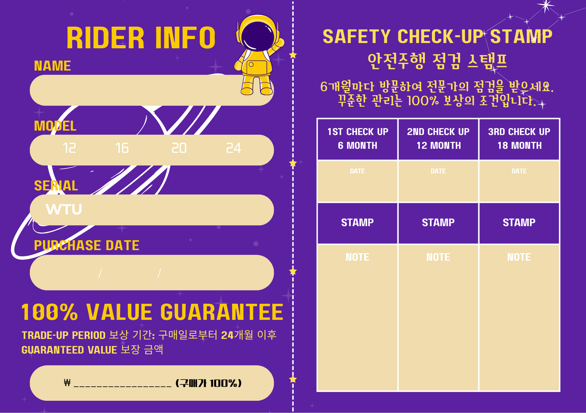 구매 고객에게는 아이의 성장 기록과 정비 이력을 담을 수 있는 **[성장 패스포트]**를 증정합니다.