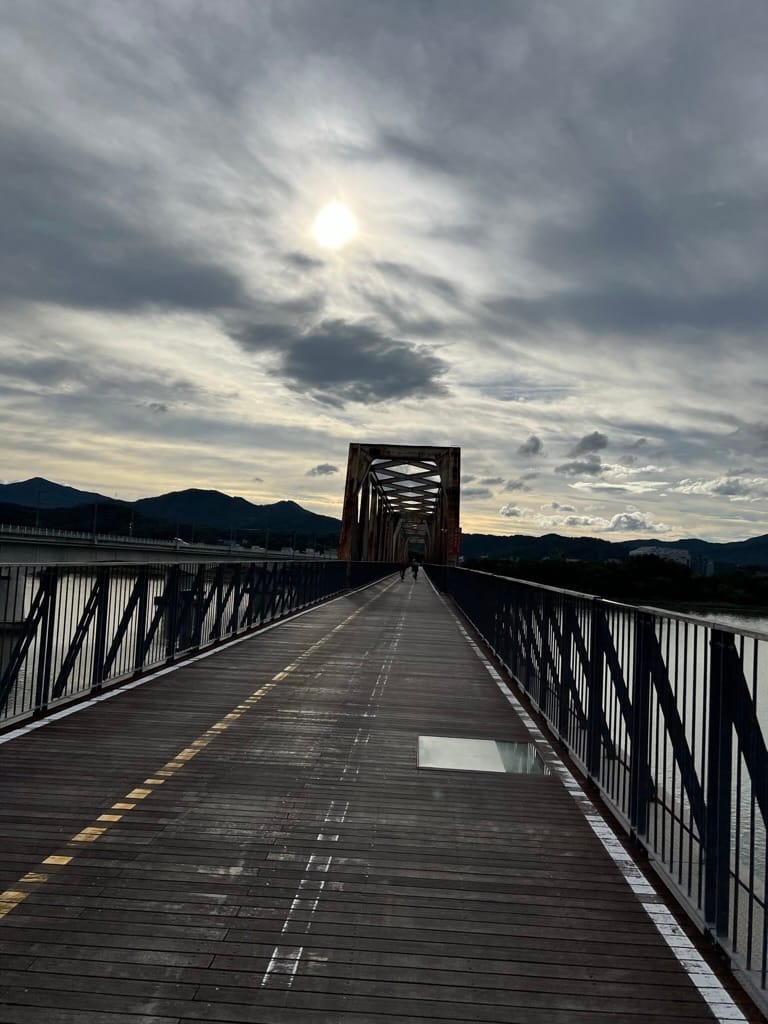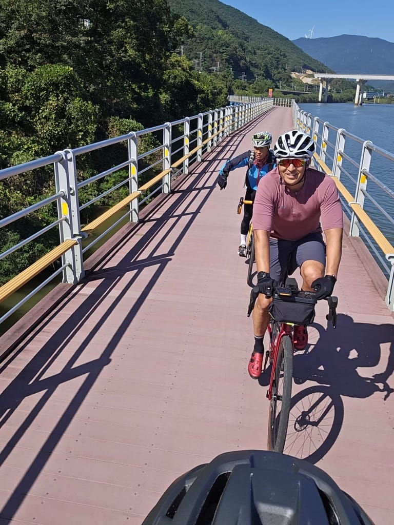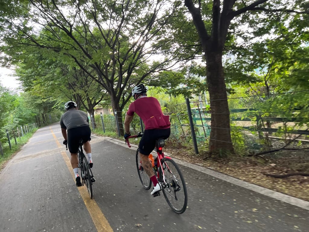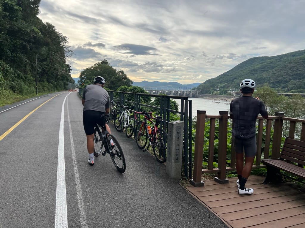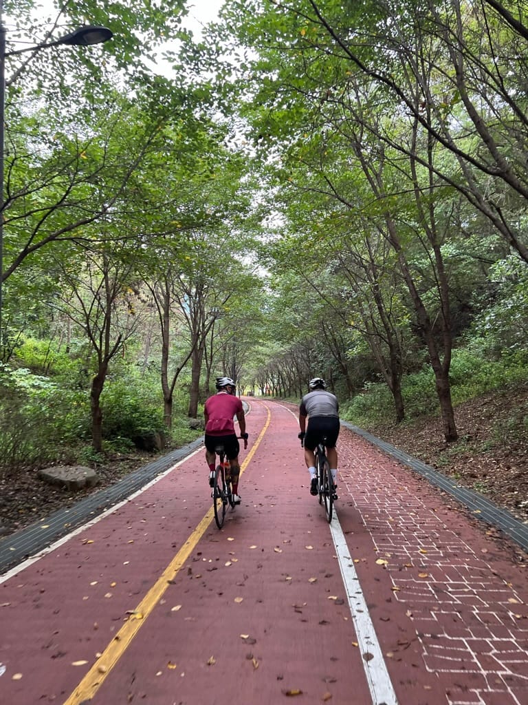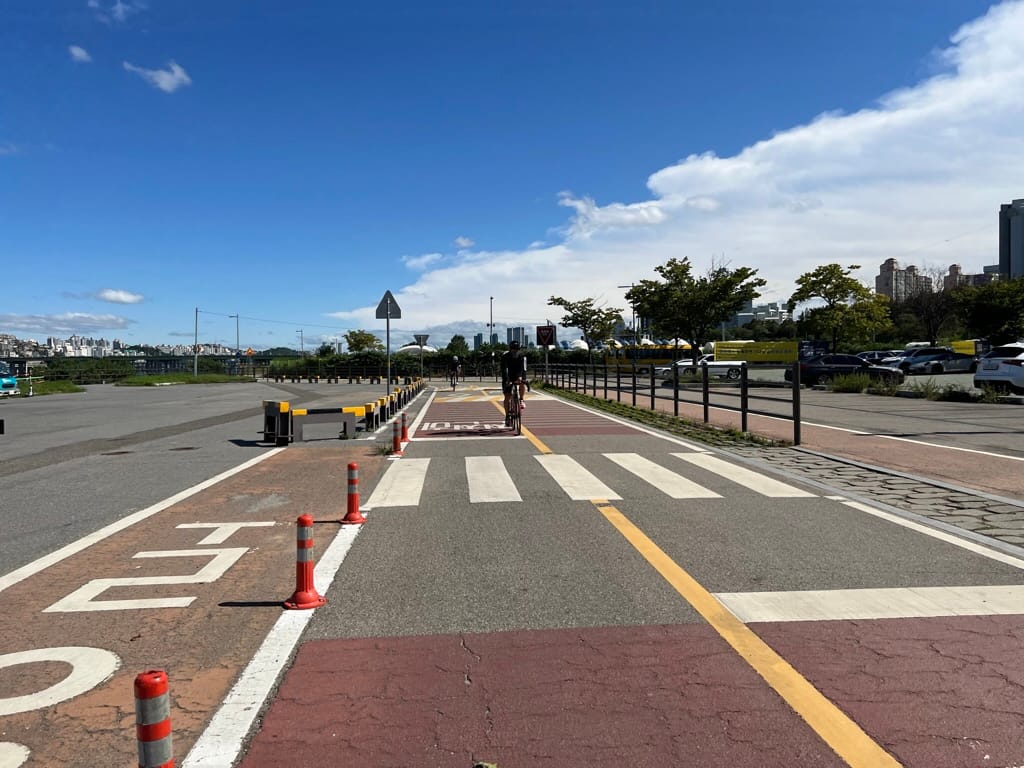 The urban stretch. The Han River bike path through Seoul is one of the best urban cycling experiences in the world — no exaggeration. Dedicated path, separated from traffic, running under bridges and past riverside parks.