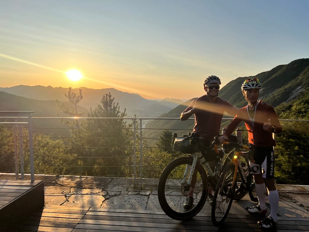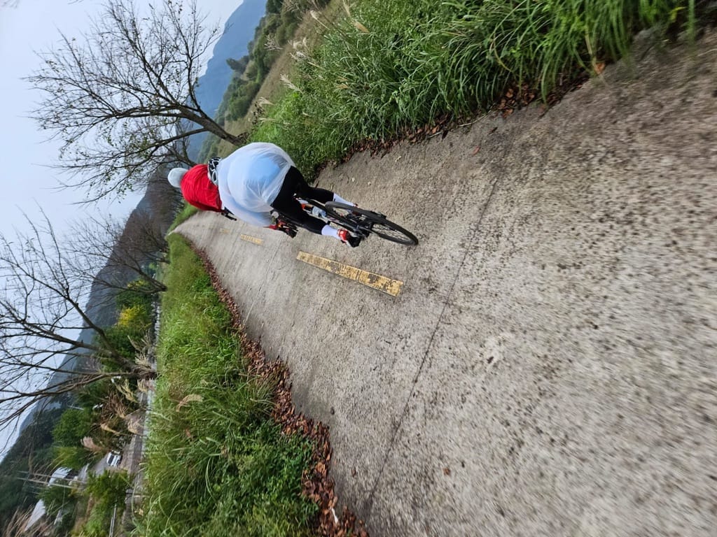 Not as steep as Ihwaryeong, but it's the first real climb. Your body isn't ready for it — especially after 200 km of flat riding. The shock is what makes it hard.