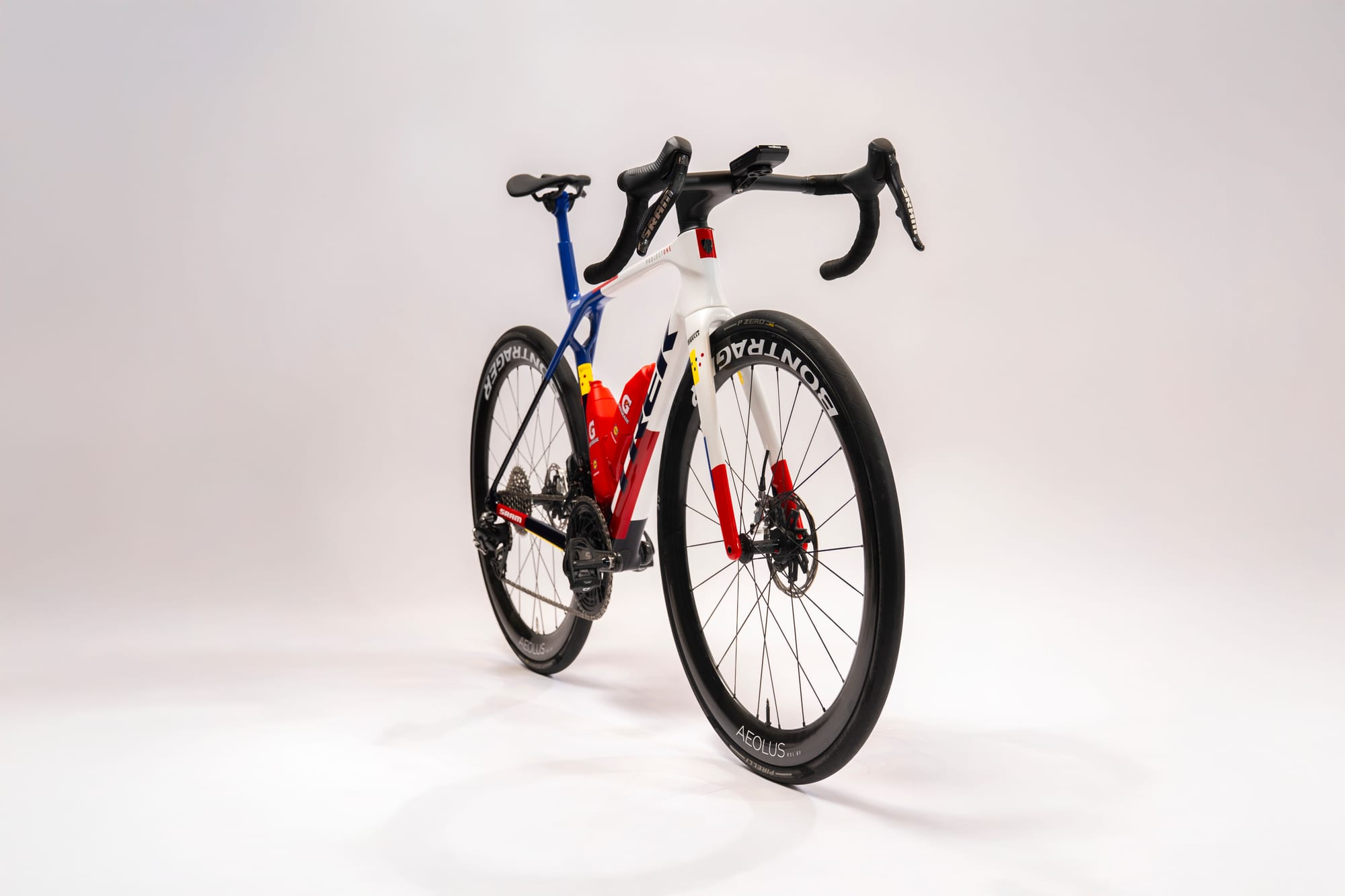 White and blue with Lidl-Trek team graphics. This is the livery that will be on TV at the Tour de France this summer. If you've ever wanted to ride what the pros ride — and LOOK like it too — this is your chance.