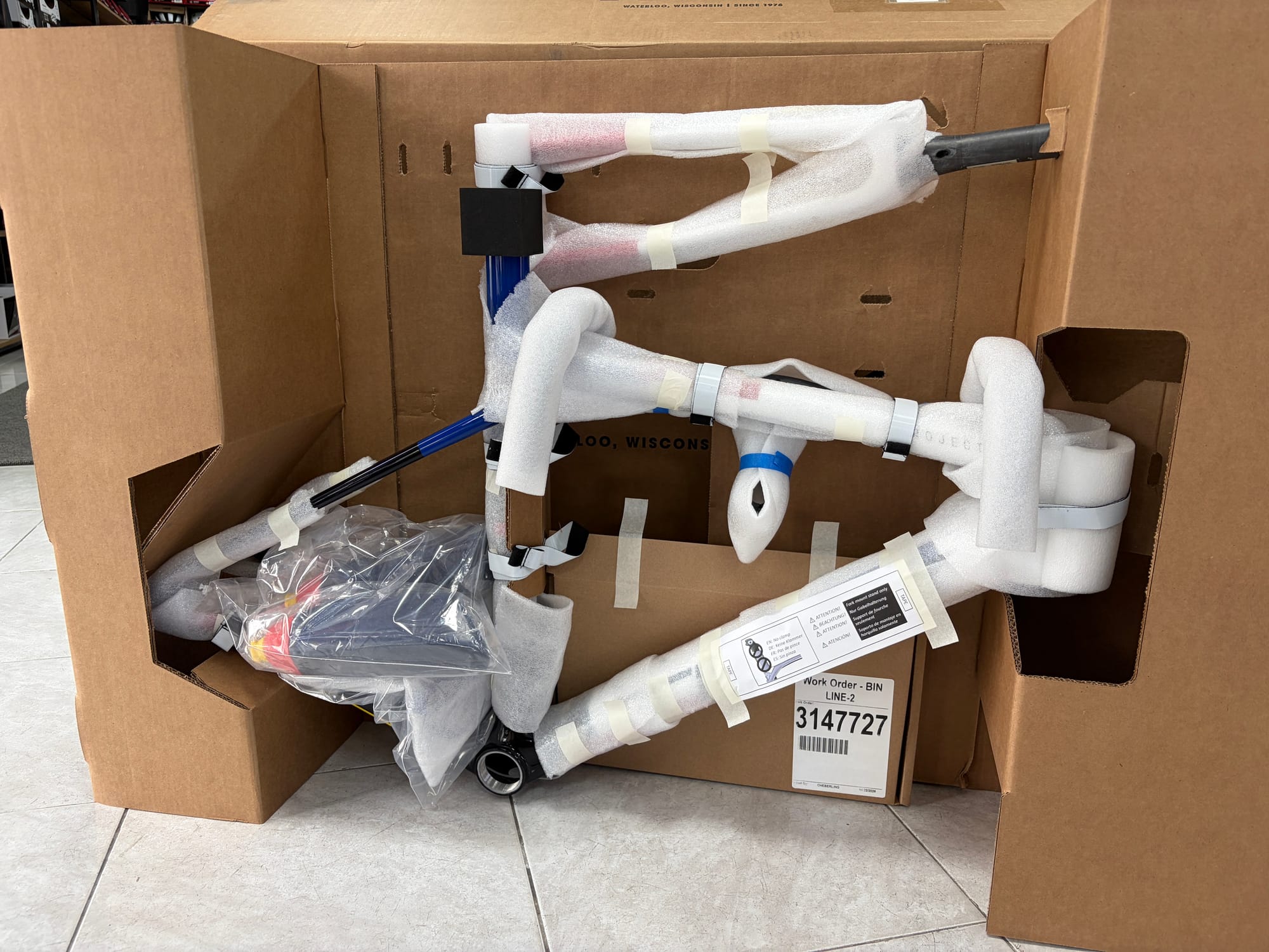 - Includes: Frame, fork, integrated cockpit, seatpost