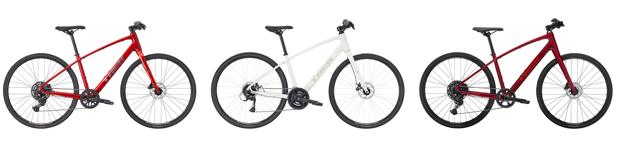 - Trek FX 2 / FX 3 — lightweight hybrid, perfect for base-to-town rides and bike paths